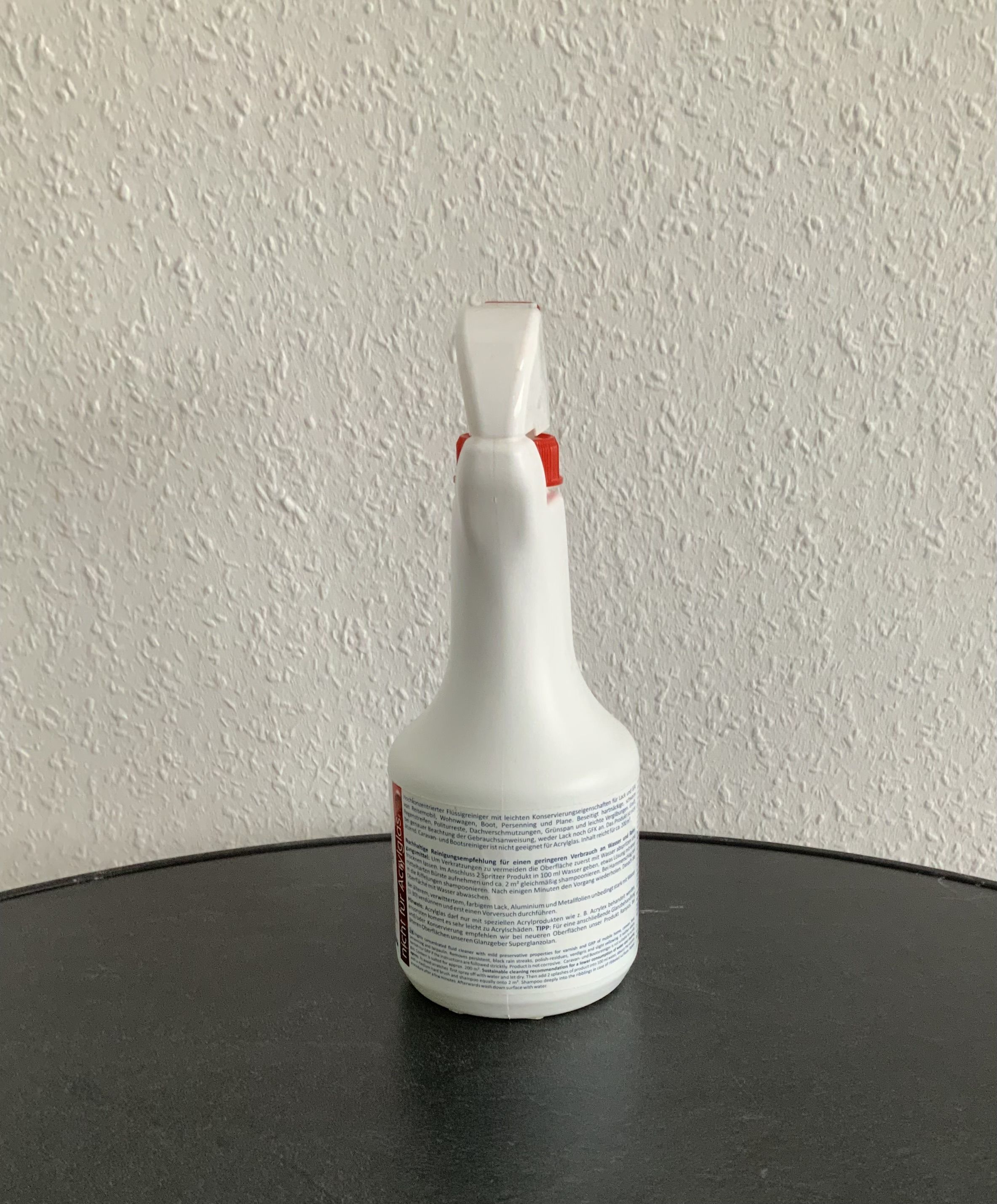 Greift weder Lack noch GFK an. Der Inhalt der 500 ml.