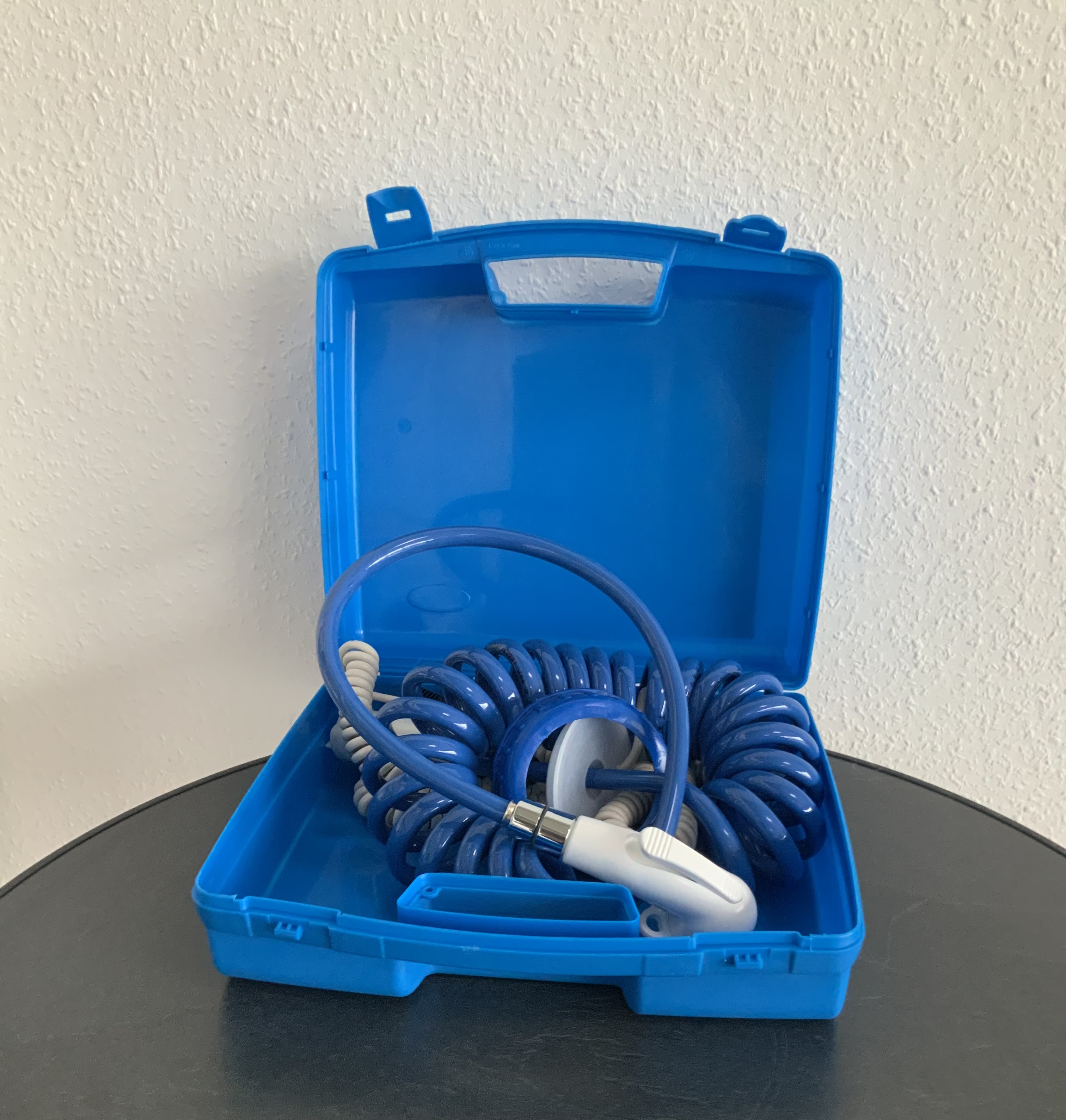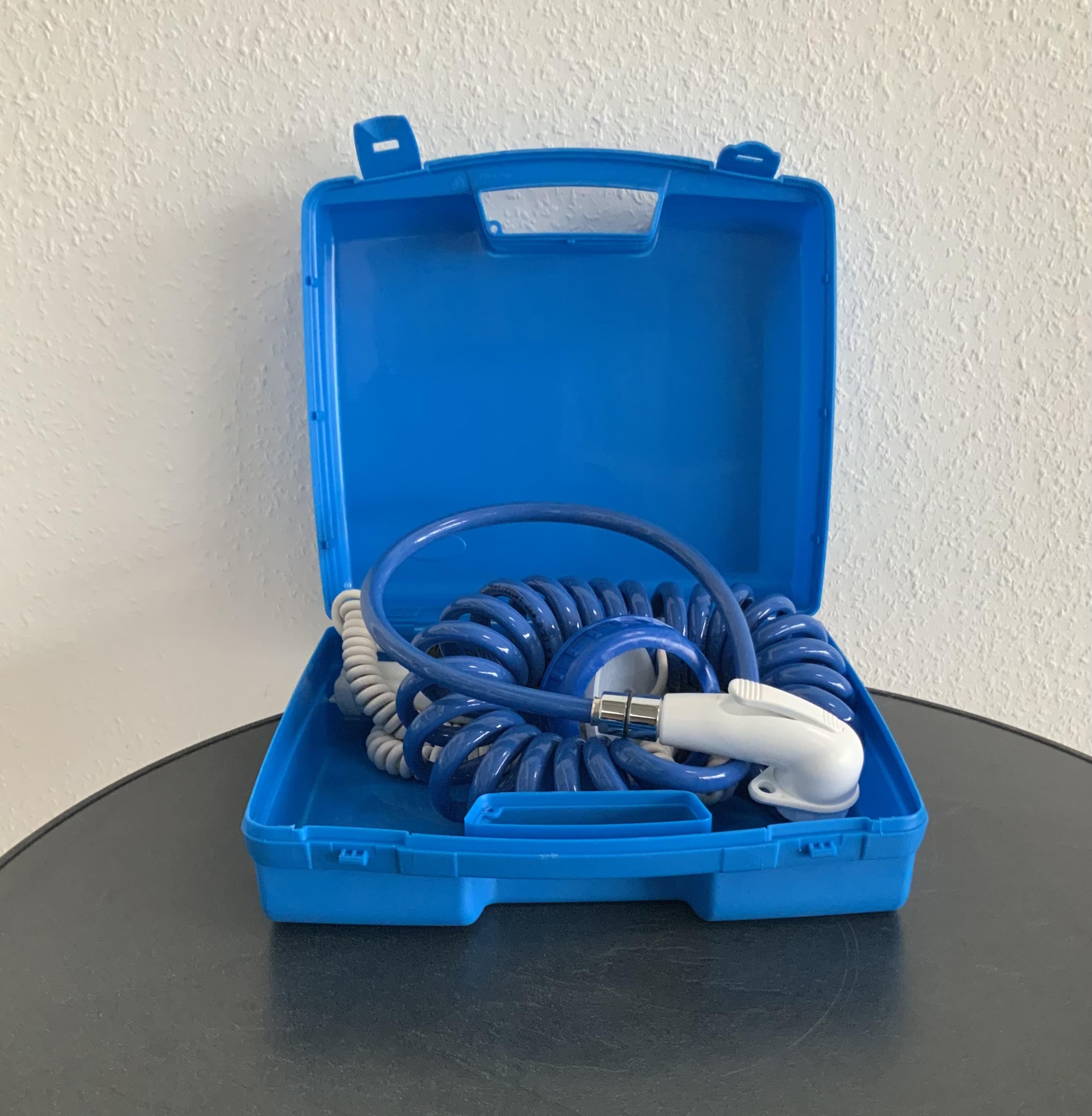 Der Wendeschlauch mit Stellbrause lässt sich auf über 2 m auseinanderziehen